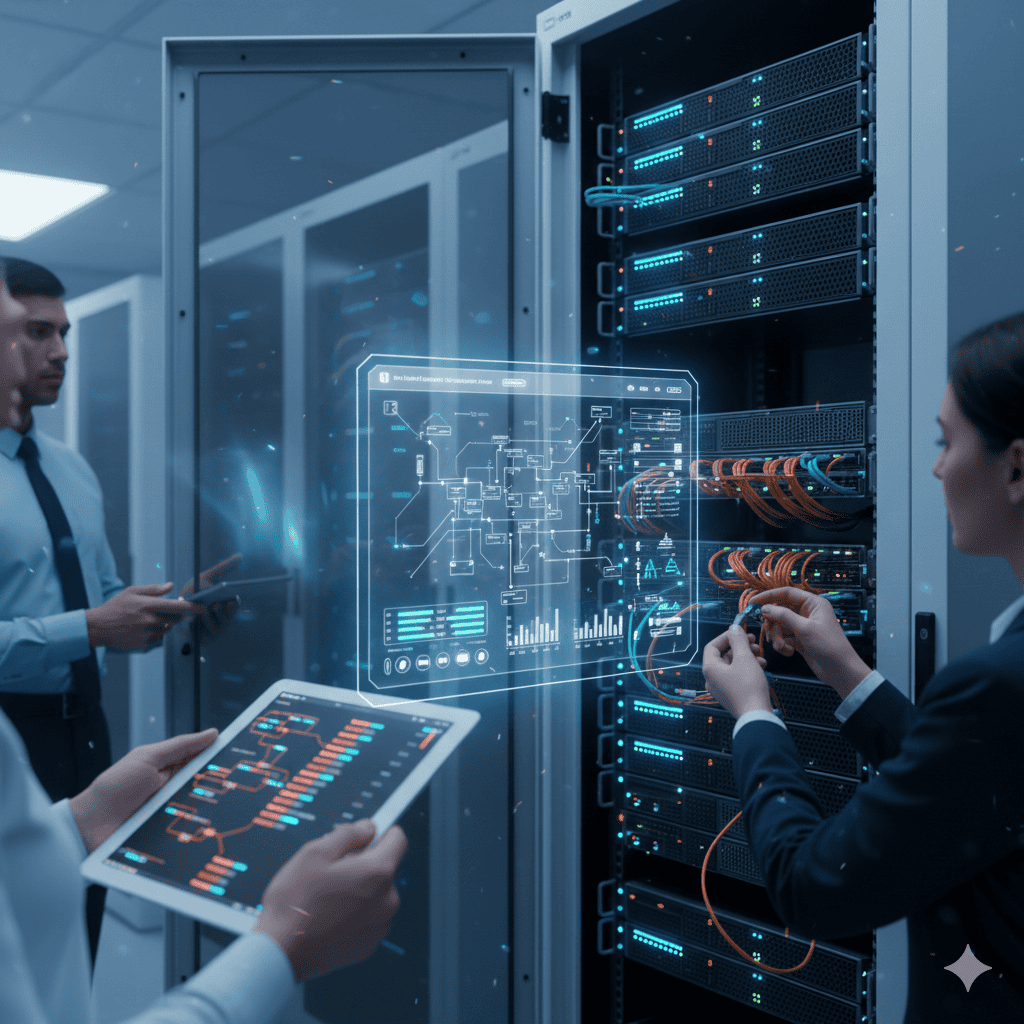 Wir planen und realisieren das technische Fundament für Ihren Betrieb. Von der sauberen Verkabelung und dem Aufbau sicherer Server-Umgebungen bis hin zur Inbetriebnahme Ihrer gesamten Büro-IT sorgen wir für ein System, das vom ersten Tag an stabil und leistungsstark läuft.